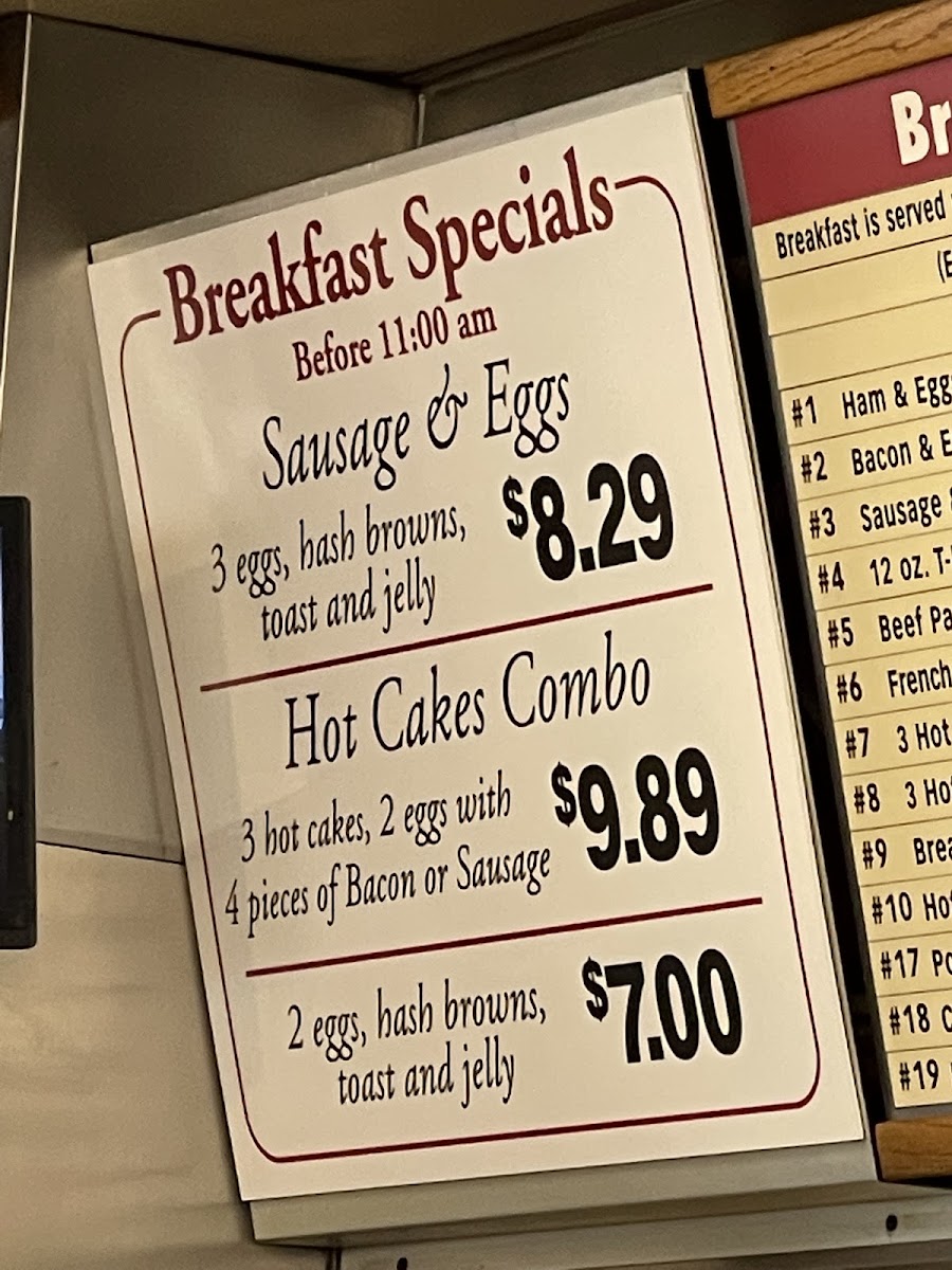 “ Local place to get great breakfast all day long. Friendly and timely. Breakfast burrito is amazing and lightly toasted. Pancake, sausage and eggs were cooked to order. Casual place and good for families. They normally put their fresh salsa in the burrito, I decided to put jelly on each bite so it was similar to a Monte Cristo taste. ”
